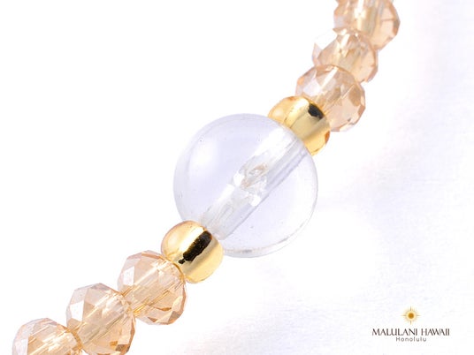 上品なピンクの石と、シャンパンゴールドのガラスビーズは、あなたの魅力を引き出し、優しい愛に包まれる幸福をもたらしてくれるでしょう。