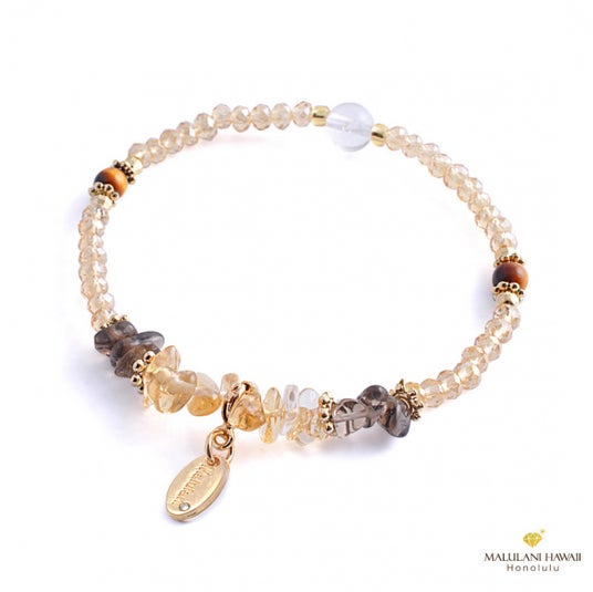 太陽の光で豊かさを育むシトリン、財運や健康運を強化するスモーキークォーツに、チャンスや洞察力を運ぶタイガーアイを組み合わせた、豊かな繁栄をもたらすブレスレット。