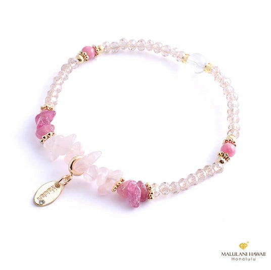 永遠の愛の象徴ローズクォーツ、魅力を引き出し、良縁をもたらすピンクトルマリンと、優しい母性のロードナイトで仕立てた、女性らしさ満載のブレスレット。
