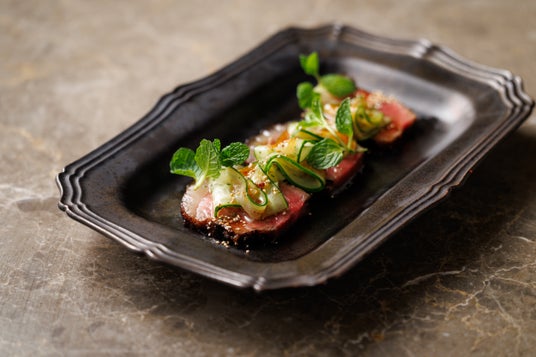 タマリンドを使ったタイの伝統的なソースで食べる牛肉のグリル。香ばしく焼き上げた肉と酸味の効いたソースがベストマッチ。ミントがアクセントに香ります。