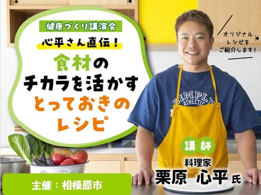 【相模原市】「とっておき減塩レシピ」をテーマに、料理家 栗原 心平さん講師による“健康づくり講演会”を3月22日(土)に開催します!