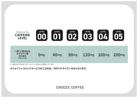 CHOOZE COFFEE、2/17から日本橋店で「カフェインレコメンドサービス」を提供開始。カフェイン増量の「ハイカフェインコーヒー」提供も。