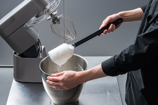 ヘッドに凸凹が無いので、ボウルのフチで食材を一発で落とせます。また気泡を潰したくない生地も手早く均一に混ぜられます。