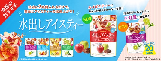 春夏に向け、水出しアイスティー商品のラインナップ拡充!「日東紅茶 水出しアイスティー アップルルイボスティー10袋入り」「日東紅茶 水出しアイスティー アールグレイ20袋入り」2月25日(火)より発売