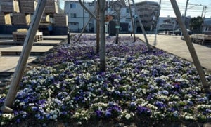 春開催に向けて、現在会場にある花壇の花をつぼみだけを残して一部を摘み取り、フェア会場を彩る花壇作りに銭湯関係者が参加いたします。