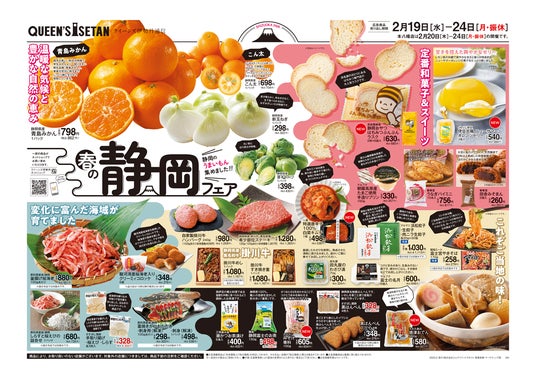 三越伊勢丹のグループ会社で、首都圏を中心に19店舗のスーパーマーケット(クイーンズ伊勢丹)を運営する株式会社エムアイフードスタイル(本社:東京都新宿区、代表取締役社長:雨宮 隆一)は、2月19日(水)~2月24日(月・振休)までの期間限定で、「春の静岡フェア」を開催いたします。