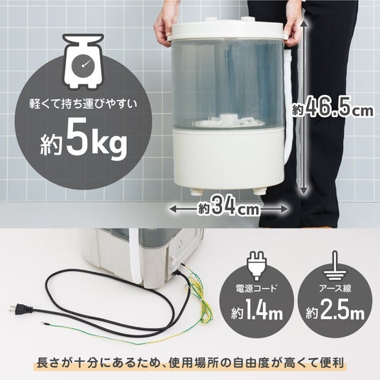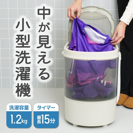 本製品は、洗濯中の様子が見える「スケルトンボディ」を採用した小型洗濯機です。