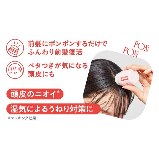 汗や皮脂でベタつく前髪にポンポンするだけですぐにふんわり前髪を復活させるアイテム。皮脂吸着パウダーでおでこのテカリや気になるニオイ*1 もケア。雨の日のうねり・ひろがりが気になる時や、ドライヤーが使えない外出先でもお使いいただけます。