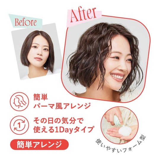 クセ毛を活かしたヘアスタイルを楽しみたい方、美容院後のパーマヘアをキープさせたい方、ファッションに合わせて1日だけパーマ風アレンジヘアを作りたい方におすすめです。シャンプーで簡単に落とすことができるので、その日の気分で気軽にお楽しみいただけます。
