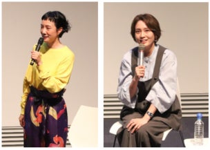トークショーを行ったモデル・はなさん(左)、料理家・和田明日香さん(右)