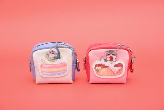 【内容】チャームをポケットに入れるとにゃんこのお顔がちらっと見える、チャーム付きのミニポーチです。プール遊びの楽しげなデザインと、いちごのバスケットに入ったキュートなデザインの2種展開です。ちょっとした小物を入れるのにぴったりな、マチ付きのミニサイズです。カラビナ付きなので、バッグやリュックに付けてお使いいただけます。※数量限定