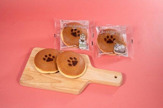 【内容】ふんわりとした生地で、北海道産小豆を使用したなめらかなこしあんを挟んだどら焼きです。生地の中央に肉球の焼印を押して仕上げました。パッケージは「mofusand」とコラボレーションしたデザインで、全2種類です。※数量限定
