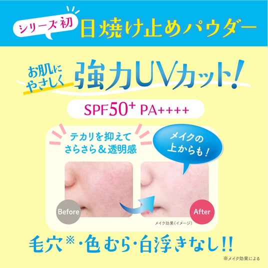 敏感肌でも使えて洗顔料で落とせる、お肌にやさしい強力UVカットフェイスパウダー。