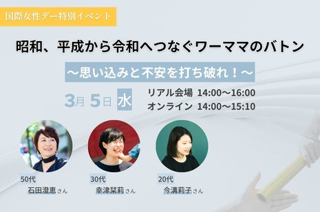 ・イベントタイトル:昭和、平成から令和へつなぐワーママのバトン ~思い込みと不安を打ち破れ!~