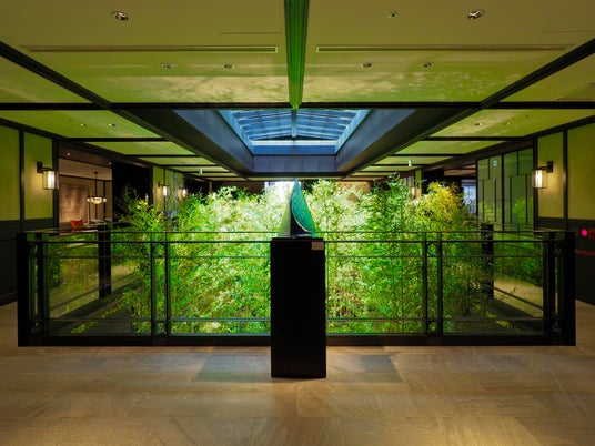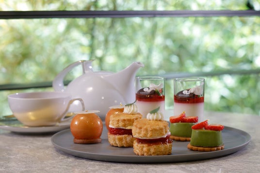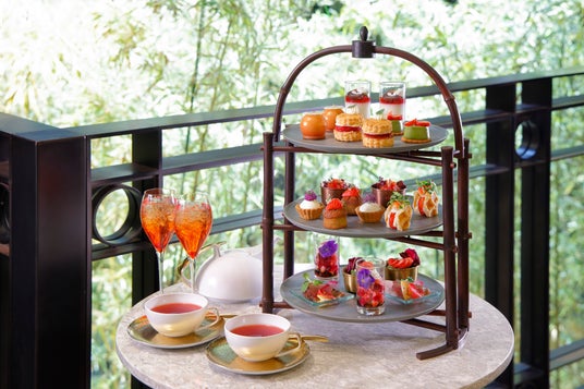 中央の竹林を眺めながら優雅なアフタヌーンティーを、
