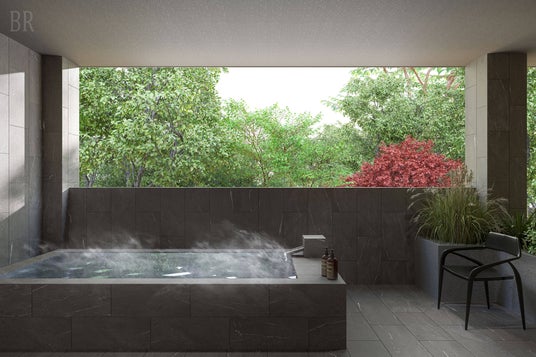 SUITE-スイート客室には、里の自然を望む客室露天風呂を完備。富士山の雪解け水が岩肌を伝い、数十年の歳月を経て地底を流れた透明な湧水を使用しています。