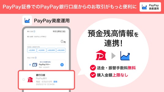 PayPay証券株式会社(本社:東京都千代田区、代表取締役社長執行役員CEO:番所 健児、以下PayPay証券)とPayPay銀行株式会社(本社:東京都新宿区、代表取締役社長:田鎖 智人、以下、PayPay銀行)およびPayPay株式会社(本社:東京都新宿区、代表取締役 社長執行役員CEO:中山 一郎、以下、PayPay)は、2025年2月16日より、キャッシュレス決済サービス「PayPay」で提供するミニアプリ(※1)「PayPay資産運用」においてPayPay銀行の普通預金残高を表示する機能の提供を開始しました(※2)。なお、「PayPay証券アプリ」では順次リリースされる最新のバージョン(Ver 3.18.0)からPayPay銀行の普通預金残高を表示する機能の提供を開始します。