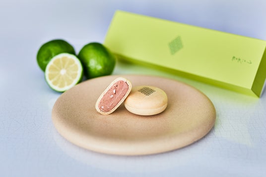 サクサクのモナカ皮にふんわり軽いチョコレートクリーム、香り華やかで瑞々しい国産のベルガモットを合わせて絞りました。味と食感の調和を楽しめる「カカオハナレ」の代表作です。モナカに施された紫陽花の家紋は鎌倉発祥を象徴し、和やかさと団らんの願いが込められた縁起のスイーツです。