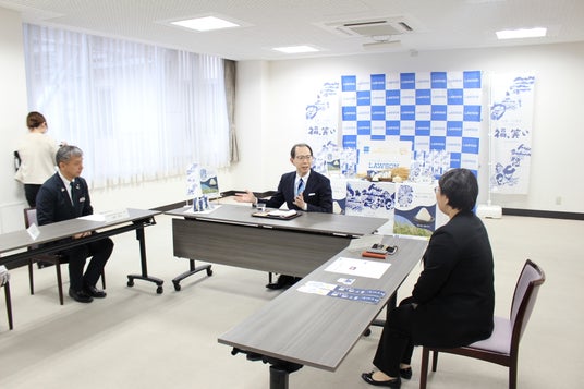 2月18日(火)から、日本各地で生産されている希少な“ブランド米”を単一で使用したおにぎり「日本おこめぐり」シリーズとして、福島県トップブランド米「福、笑い」を使用した「福、笑い 塩にぎり」(税込138円)が全国のローソン店舗(14,014店:2024年12月末時点)で発売されます。同シリーズで福島県産米を使用したおにぎりが発売されるのは、今回が初めてです。発売を記念し、2月17日(月)に株式会社ローソン 坂本理事執行役員 東北カンパニープレジデント兼東北商品部部長とJA全農福島 渡部県本部長らが福島県庁に来庁され、内堀福島県知事への商品発売報告会が開催されました。