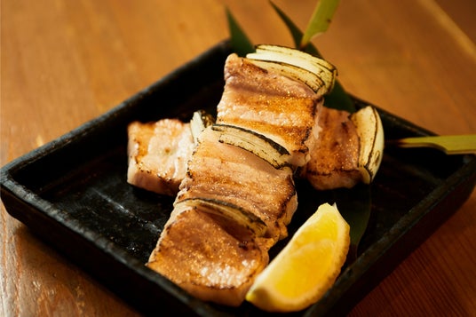 豚バラ肉がジューシーな味わい。塩とレモンでシンプルに味わってください。