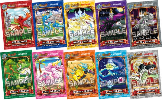 コラボドリンクは、「城とドラゴン」のキャラクターをイメージした「レッドラガール」「ブルドラガールズ」「ホワドラガール」「ブラドラガール」「グリドラガール」の全5種をご用意します。注文特典として、オリジナルポストカードを全10種の中からランダムで1枚、「城とドラゴン」ゲームアプリ内アイテムがもらえるQRコードを1枚プレゼントします。ここでしか手に入らないJOYSOUND公式キャラクター「ジョイオンプー」をイメージした「限定剣士お着替え」などGETのチャンス!