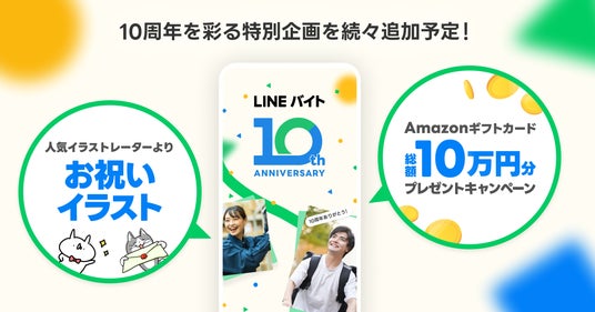 【LINEバイト】10周年を迎えたことを記念して特設サイトを開設 「お祝いイラスト」や「10年のあゆみ」など特別コンテンツを公開