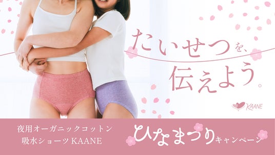 女の子の健やかな成長を願う「ひな祭り」をきっかけに、心と体について家族でゆっくり向き合う特別な日にしてほしい。そんな願いを込めて、オーガニックコットン100%にこだわった布ナプキン発想の吸水ショーツブランド「KAANE(カーネ)」が特別キャンペーンを開催いたします。