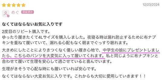 KAANEでは「娘や姪の世代に"生理は苦痛"という概念を継承しない」事をブランドのミッションとしており、その想いとお客様からの多くのご要望もあり、2024年にジュニアサイズの「KAANE JUNIOR」も発売開始しております。