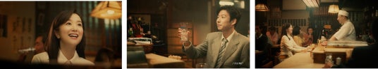 当時の雰囲気を知る人は懐かしさに思いを馳せ、知らない人もどこか親しみを覚える昭和の酒場が舞台。氷彩1984が長年愛されてきた繁盛店に、当時の若かりし女性客を演じる鈴木京香さんが来店します。「氷彩、ください。」と店主に頼む鈴木京香さん。あの時代が纏う日本の活気や明日への期待感を視聴者に懐かしんでもらいながら、現代の鈴木京香さんへと舞台が移り変わることで、氷彩の愛され続けている歴史を存分に描きます。懐かしさを感じながらも、今も色褪せず多くの人に感動を届ける米米CLUBの「浪漫飛行」をバックミュージックに、当時のお店の佇まいや、来店客の出で立ちにも親しみや懐かしさを感じつつ、京香さんの愛らしい演技にご注目下さい。