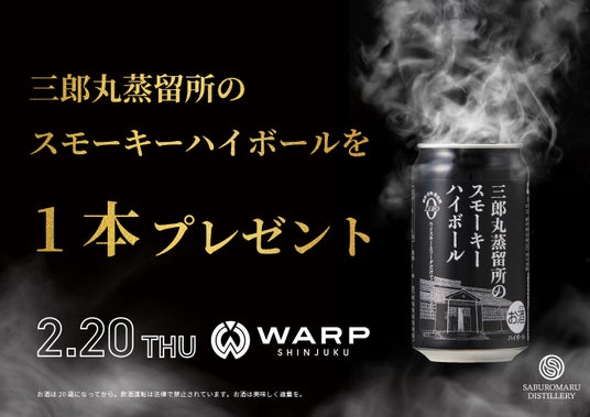 【新宿】WARP SHINJUKUにて “日本初”のスモーキーハイボール缶『三郎丸蒸留所のスモーキーハイボール』 1本無料プレゼントイベント開催!