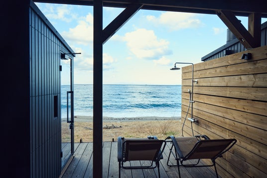 ゆうみBeach Sauna(運営:株式会社紀伊乃国屋)が位置するのは、房総半島南部の元名海岸。南房総国定公園に指定されており、天気のいい日にはサウナからは「関東富士見百景」にも選ばれた“富士山&オーシャンビュー”の絶景を堪能することができます。全五室のアウトドアプライベートサウナで、すべてのサウナがオーシャンビュー。外気浴デッキからは砂浜に降りることができ、そのまま“海風呂”体験も可能です。