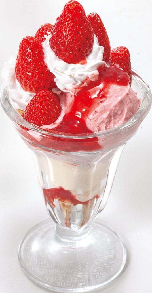 『あまおうのいちごあいす』 税込550円 ホィップクリームとあまおういちごあいすが、フレッシュあまおうの高い糖度をより一層引き立てます。