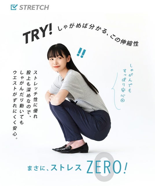 ストレッチ性に優れており、しゃがんでもウエストがずれにくい