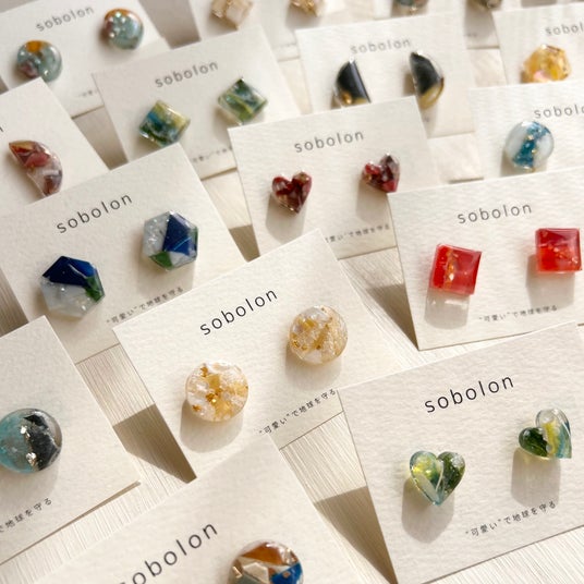 sobolonsobolonでは、海に流れ着いた海洋プラスチックを回収し、 それらを素材としたハンドメイドアクセサリーを制作・販売しております。溶かしたり、色付けなどは一切せず、海洋プラスチックそのものの質感や色味など 個性を活かしてデザインへと昇華させます。