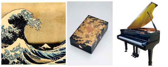 初のコラボレーション:日本が誇る浮世絵師「葛飾北斎」× 蒔絵の人間国宝 室瀬和美氏 × 遠州ピアノ