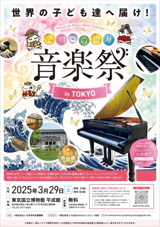 一般社団法人 日本未来支援機構(本部:東京都港区、代表理事:淺野敬子)は、2025年3月29日(土)に、東京国立博物館 平成館にて「世界の子ども達へ届け!平和への祈り音楽祭」in TOKYO(参加無料)を開催いたします。