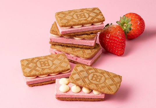 厚切りのストロベリーショコラにバターホイップショコラを絞り、バターサブレでボリュームいっぱいにサンド。苺とバターがとろけあう春限定の甘酸っぱい味わい。