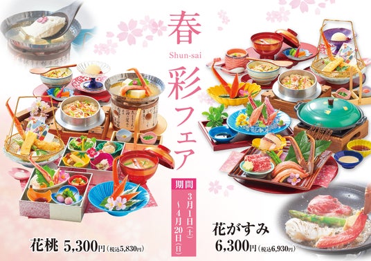 株式会社甲羅(本社:愛知県豊橋市、代表取締役社長:沼澤 裕)が全国で40店舗展開する老舗かに料理専門店「甲羅本店」では、3月1日(土)から4月20日(日)までの期間限定で「春彩フェア」を開催いたします。※一部店舗を除く。