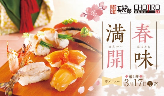 株式会社フーズネット(本社・大阪府大阪市、代表取締役社長・加藤誠)が運営する「活⿂廻転寿司にぎり長次郎」 「廻転寿司CHOJIRO京都」は、2025年2月18日(火)から2025年3月17日(月)まで、春メニュー第1弾を販売いたします。第1弾では、「春味満開(はるあじまんかい)」と題して「ふぐ」や「活車海老」など、期間限定のネタを入荷いたします。期間中『春の感謝祭』を同時開催いたします。この季節ならではの味わいを、心ゆくまでお楽しみください。