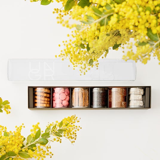 『心を込めて-sincerement-』という意味のミニャルディーズの詰め合わせは、甘酸っぱさ、くちどけのよさ、ほろ苦さなど素材の特徴を表現した彩り豊かなラインナップ。パートドフリュイ パッションアブリコなど見た目も食感もお楽しみいただけるスタッフ一押しの6品を厳選して詰め合わせました。華やかな見た目はギフトにもおすすめ。それぞれが個別の包装になっているので、異動や御礼など複数の方に感謝を届ける春の贈り物に最適です。