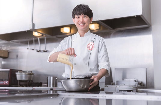 幼少期から父親と一緒にケーキ作りをし、「ケーキ屋さんになること」が夢で、製菓学校を経て一流ホテルに就職し、ウエディングケーキなどの作成を担当。菓子製造技能士(2級)の試験結果が優秀で、大阪地区で優秀賞を獲得しました。その後、一流ホテルのレストラン専属パティシエとして勤めた後、スシローの開発担当に。