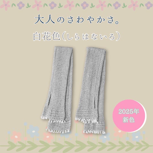 今年の春、UVカットで品良くセンス良く。春先の冷え対策をオシャレに。オーガニックコットン100%で大人のかわいさ、センスが光る。そんなアームカバー、今年は全5色で登場です。