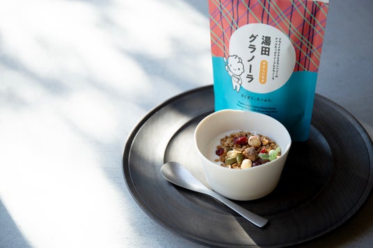 プレミアム湯田ヨーグルト(プレーン)とともに楽しむ、新たな味わい。グラノーラ専門店and/orがプロデュースした『湯田グラノーラ』誕生!