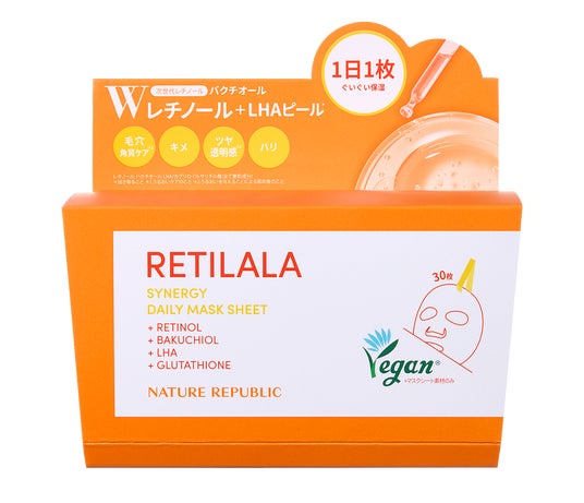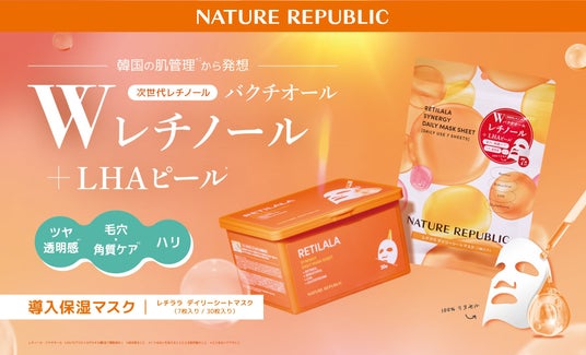株式会社ネイチャーリパブリックジャパン(所在地:東京都浜松町)は、韓国の肌管理に着想を得て開発したレチララ デイリーシートマスクを2025年4月4日(金)より順次、全国のバラエティショップ※で発売します。レチララ デイリーシートマスクにはレチノールと、さらに“次世代レチノール”ともいわれるバクチオール、“第4世代ピーリング”として韓国での肌管理にも使われるLHAを配合。拭き取りと保湿ケアが1枚で完結する新感覚のシートマスクです。