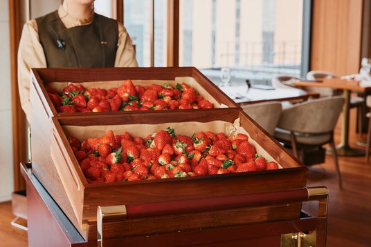 昔懐かしい車内サービスを思い出させる、レトロな雰囲気のワゴンが、真っ赤ないちごを満載して登場。ランチビュッフェで老若男女問わず人気の「いちごのワゴンサービス」です。エグゼクティブペストリーシェフが、各地の生産者や青果商など果物のスペシャリストと協力して、その時期一番おすすめのいちごを仕入れています。甘酸っぱい味と香り、弾けるようなフレッシュさを心行くまでお楽しみください。
