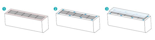 3.吸気口の上にフィルターを図のように貼り付けてください。