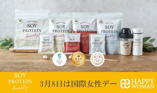ソイプロビューティは美容と健康はもちろん、サスティナブルな健康食品として社会創造を意識して開発いたしました。女性のあした大賞2020受賞、ジャパンビューティアワード2021受賞、ソーシャルプロダクトアワード2022、2024受賞。100%植物性の美容と健康を意識した女性に嬉しい大豆プロテイン商品です。