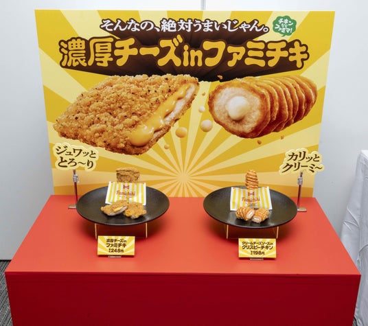 株式会社ファミリーマート(本社:東京都港区、代表取締役社長:細見研介)は、継続して取り組んでいる5つのキーワードのうち「もっと美味しく」、「『あなた』のうれしい」の一環として、ファミチキ史上、最大量※1かつ最濃厚のチェダーチーズを使用した「濃厚チーズinファミチキ」230円(税込248円)、カリッとクリーミ~な「クリームチーズソースinクリスピーチキン」184円(税込198円)を、2025年2月11日(火)から全国のファミリーマート約16,200店にて数量限定で発売しております。