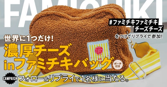 ファミリーマート公式X(@famima_now)をフォローのうえ、ファミリーマート公式Xからの対象の投稿に指定のハッシュタグをつけてリプライいただくと、抽選で1名様に『「濃厚チーズinファミチキ」バッグ』が当たります。