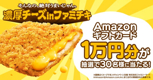 ■Amazonギフトカード1万円分が抽選30名様に当たるおトクな「濃厚チーズinファミチキ食べたい」キャンペーンを実施!
